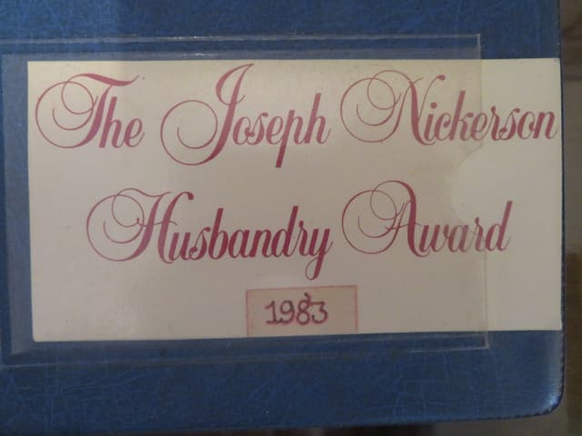 Blue folder for the Joseph Nickerson Husbandry Awards 1983. Folder contains photos, press cuttings and thank you letters to Joseph Nickerson.