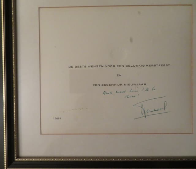 Christmas card to Joseph Nickerson from Prince Bernhard and Juliana of the Netherlands, 1984.