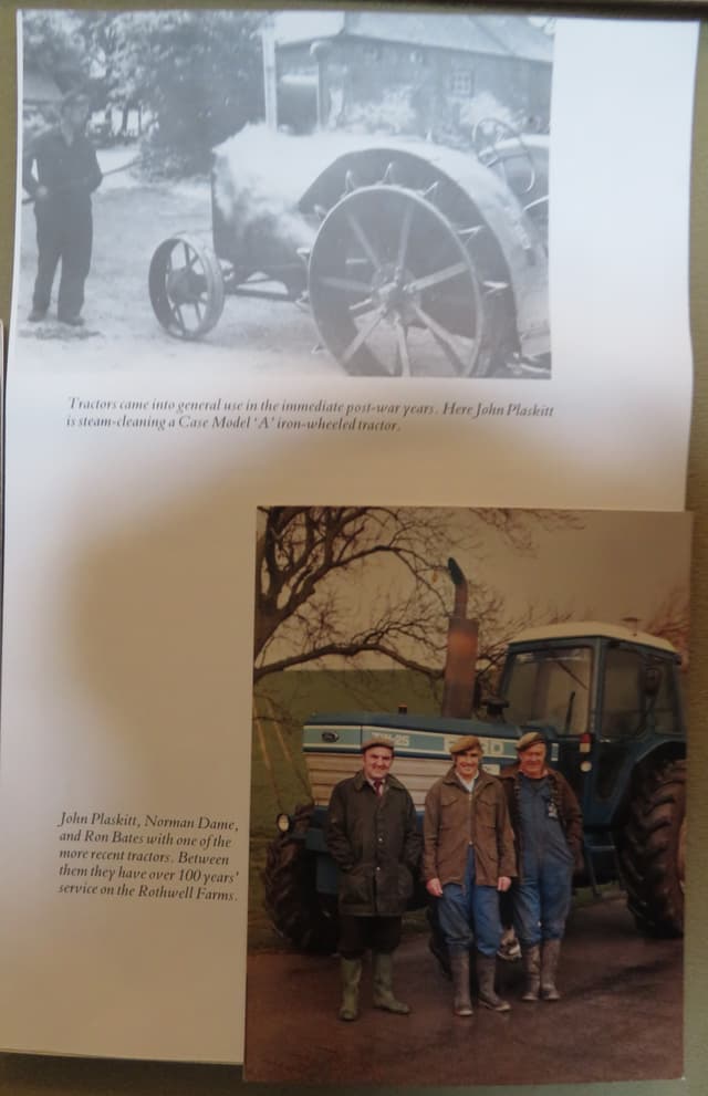 Display board of photos of farming at Rothwell including pigs, cattle and old farm machinery. Also a sale advert for pigs and cattle and a prize won by JN for pig breeding.