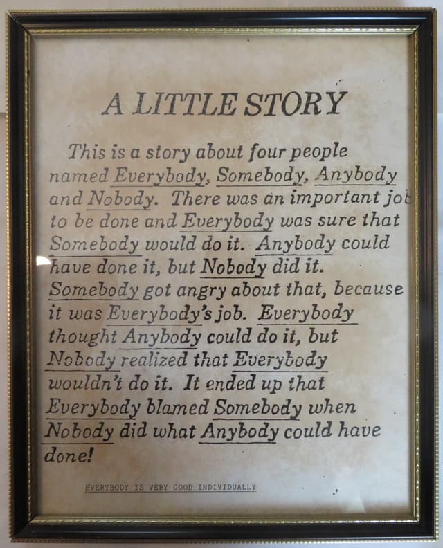 Everybody is good inividually. A story about Everybody, Somebody, Anybody and Nobody.
