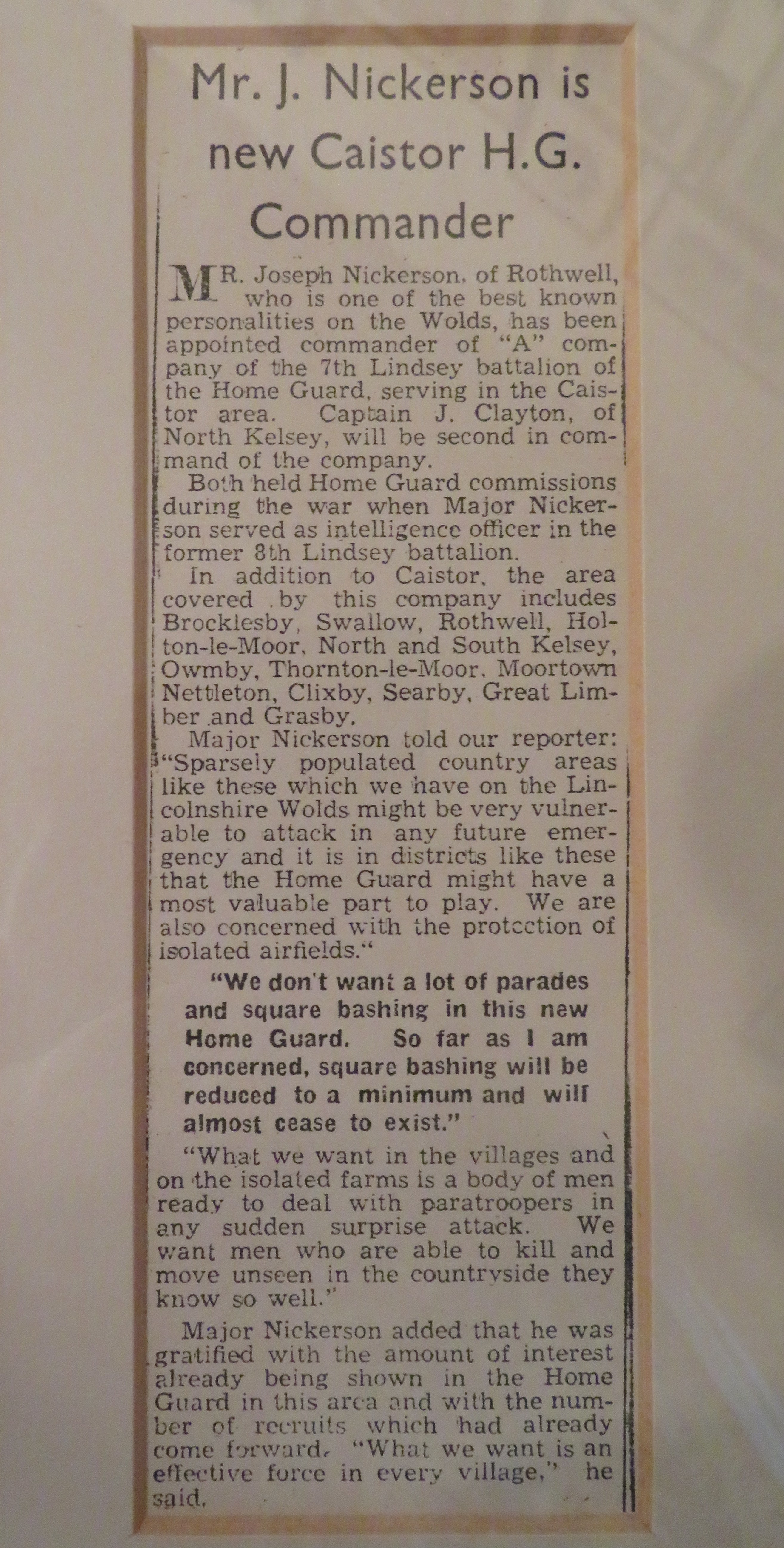 A photo of JN in his Home Guard uniform accompanied by a news clipping about his appointment. c.1952