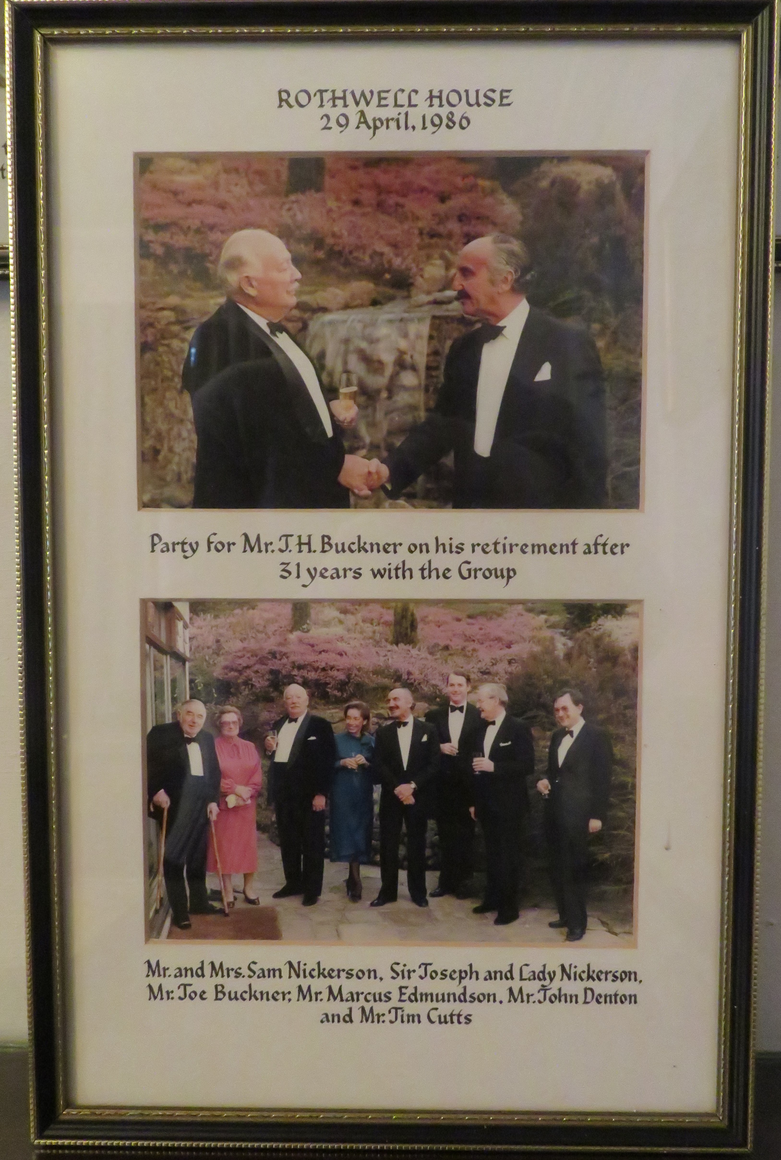 Retirement party at Rothwell House for Joe Buckner after his 31 years with the Nickerson Group, 1986.