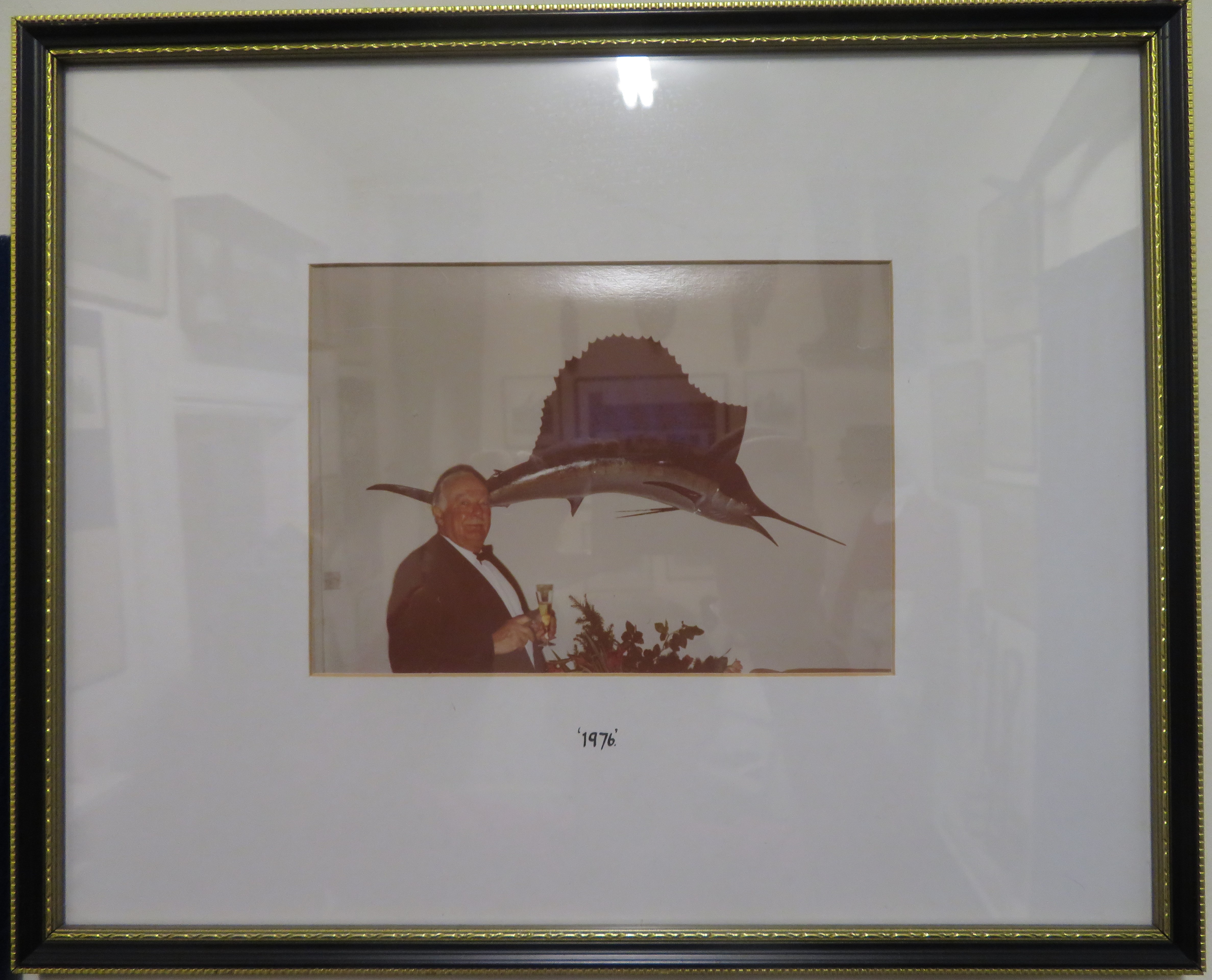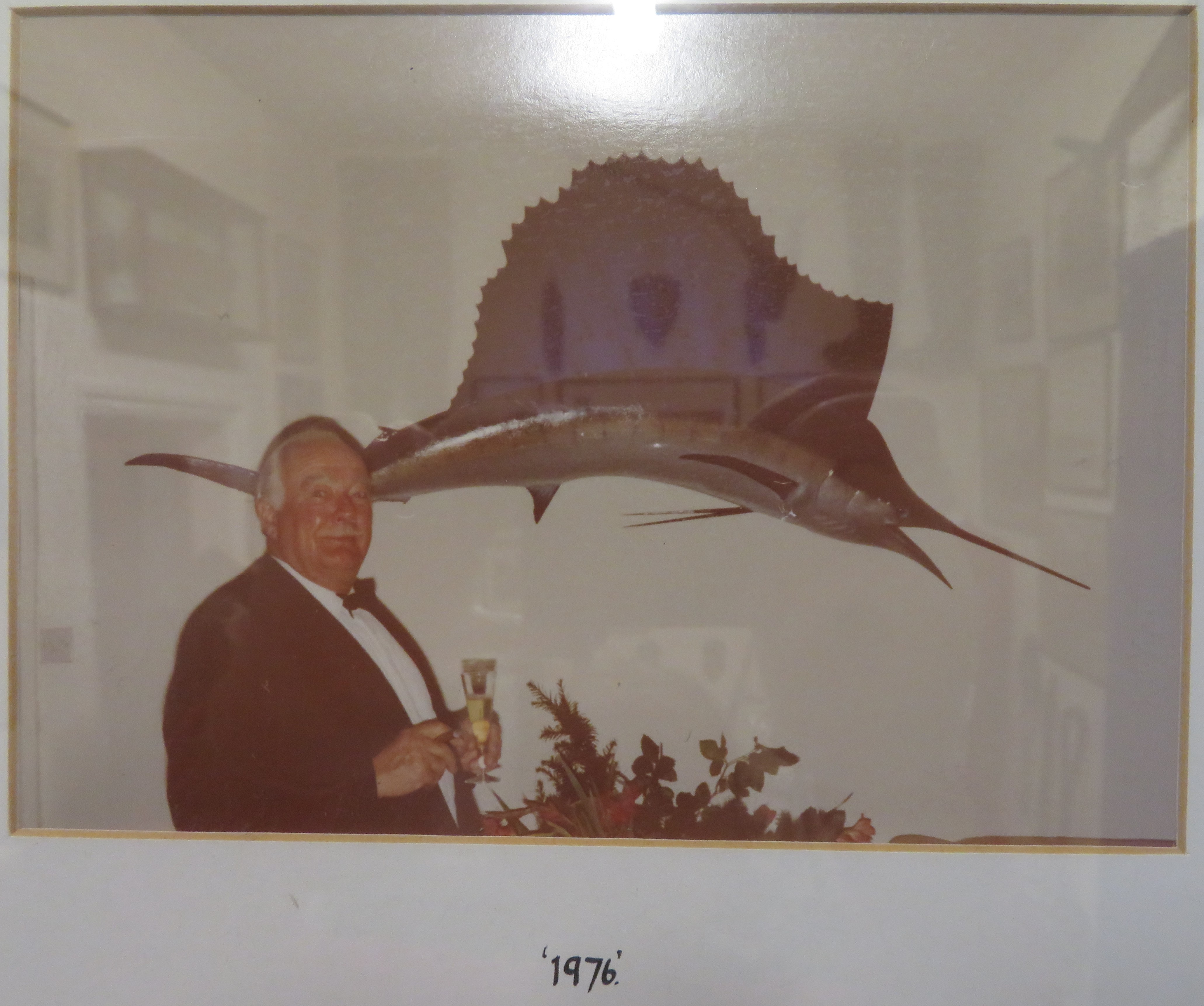 Joseph Nickerson standing by the model of the sailfish he caught in 1976